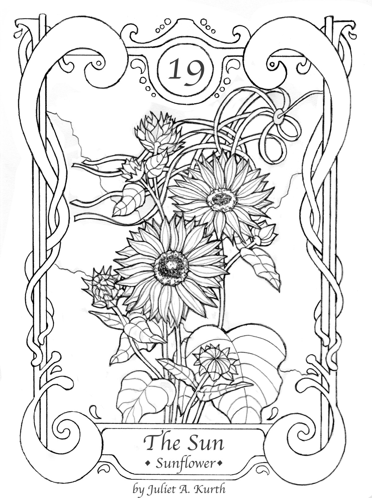 Seriously, so much is going on right now. I am doing my best to really get my shi…. ACT together! And how does that look? Well, I officially have a place where you can sign up to be on my E-mail list! Not only will you get regular messages directly in your inbox, you will also receive a free gift: a downloadable Sun Card Coloring Page from my in-progress botanical-inspired Tarot Card Set.